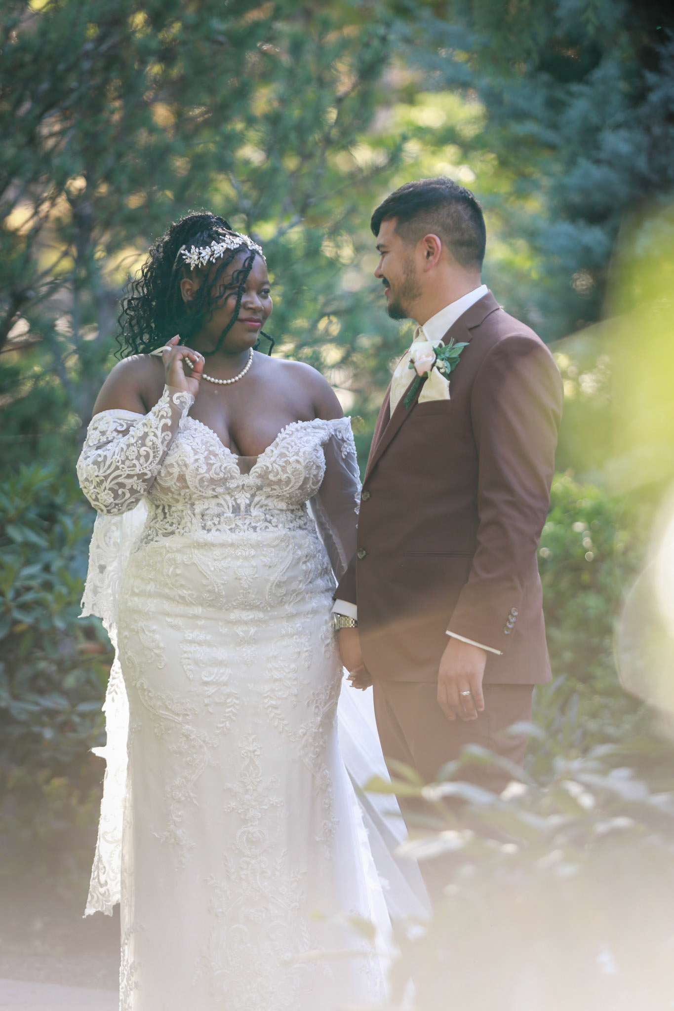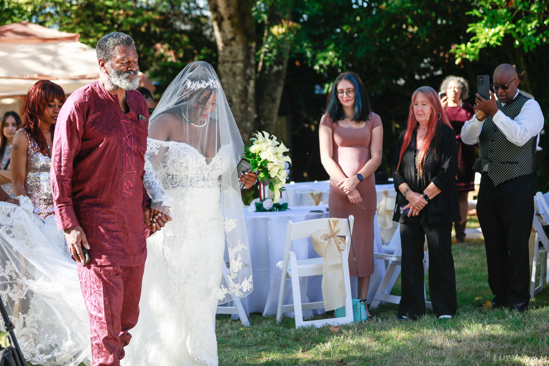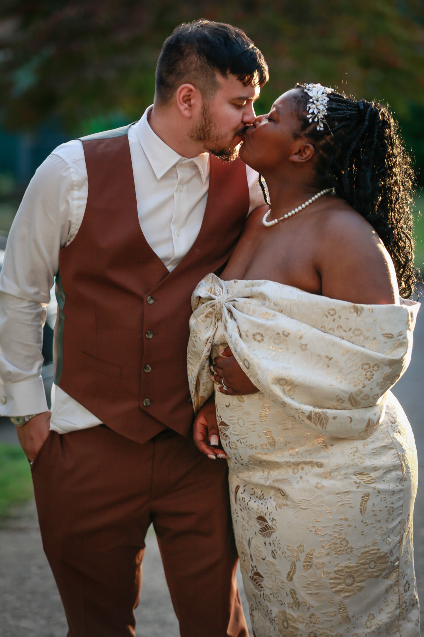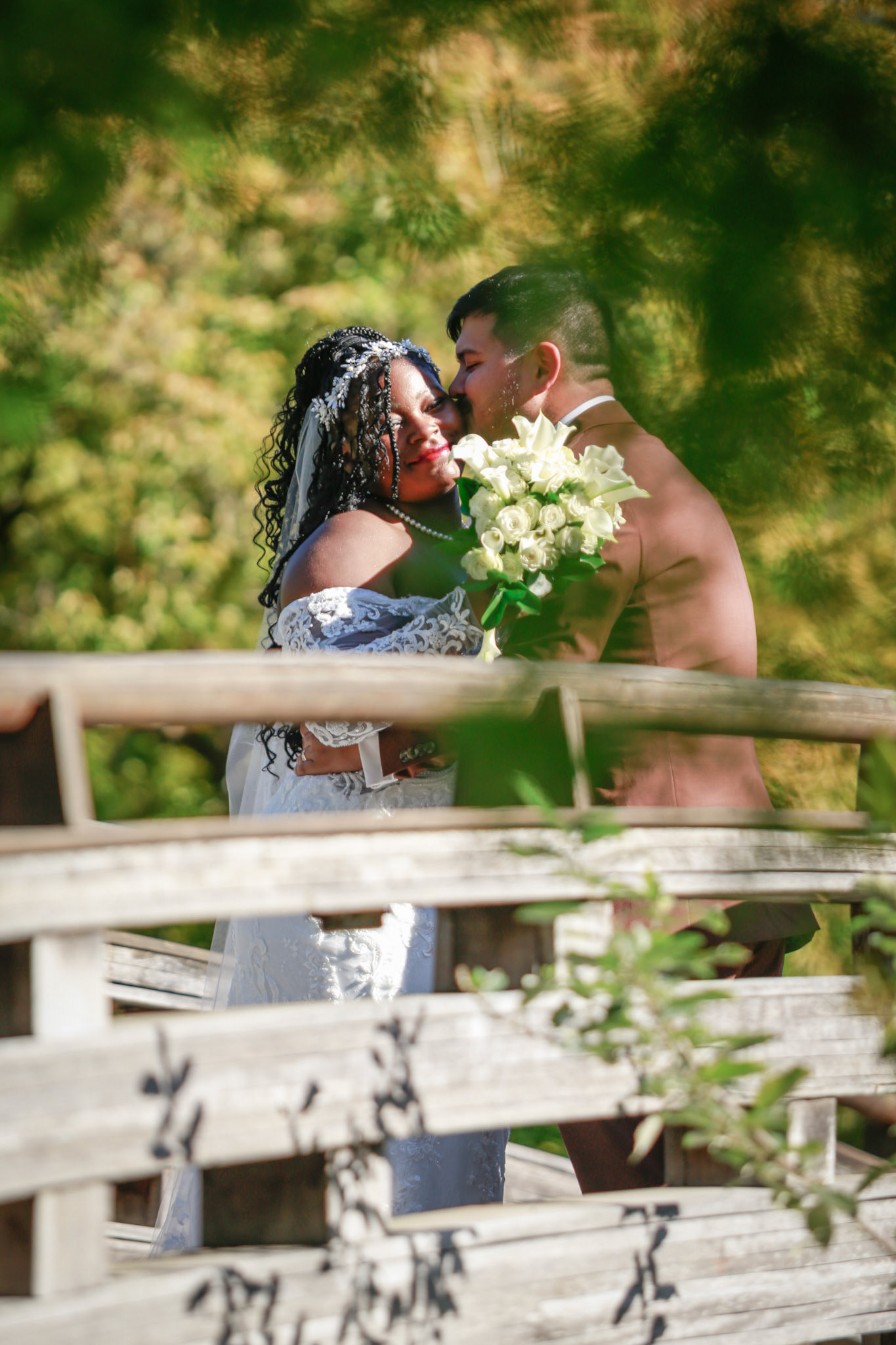 Devon and Laloni decided to last minute to have their autumn elopement at their family home's backyard in the lush green garden. Formal portraits were taken amongst the fall colors at the beautiful Tsuru Island, Japanese garden in downtown Gresham, Oregon.