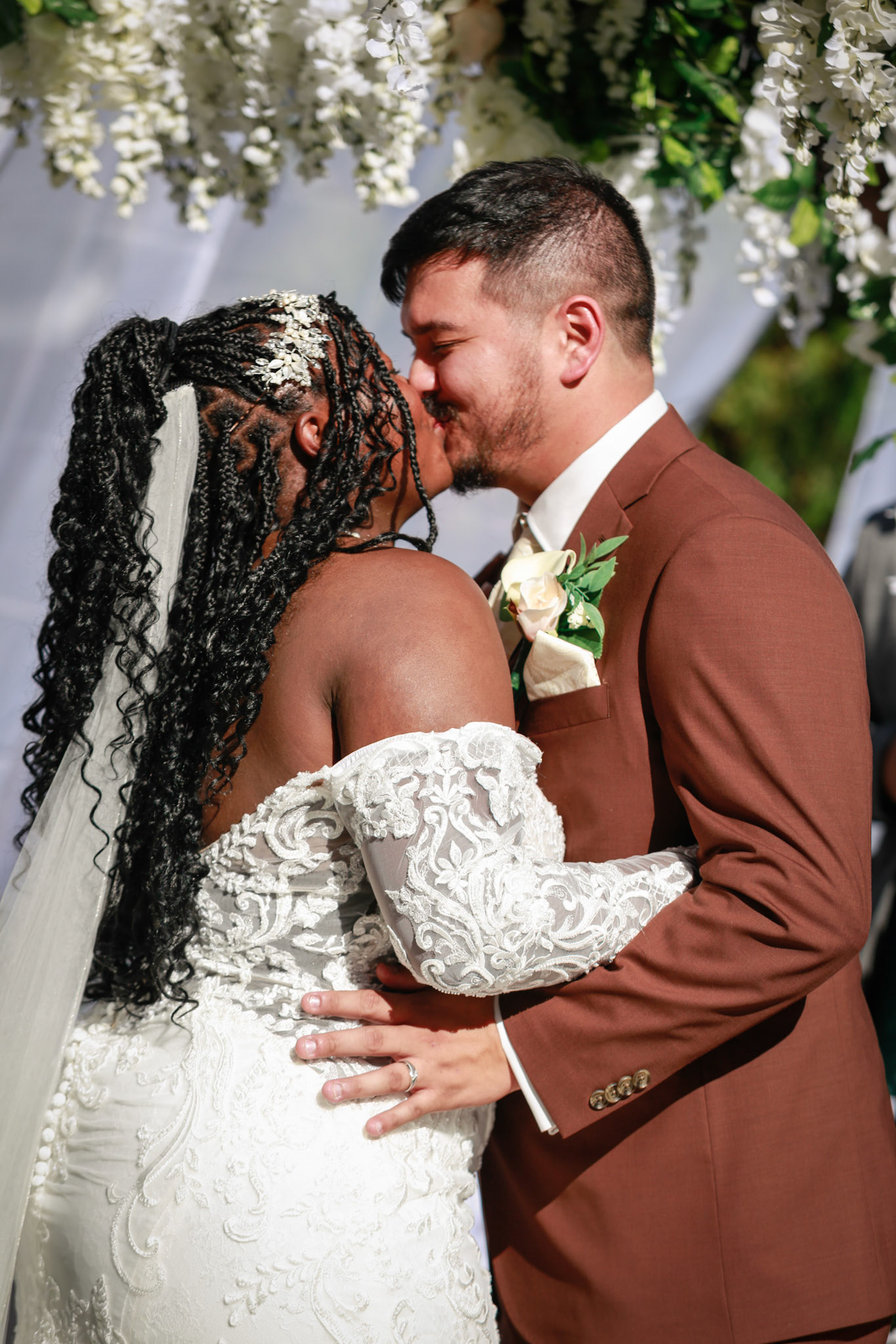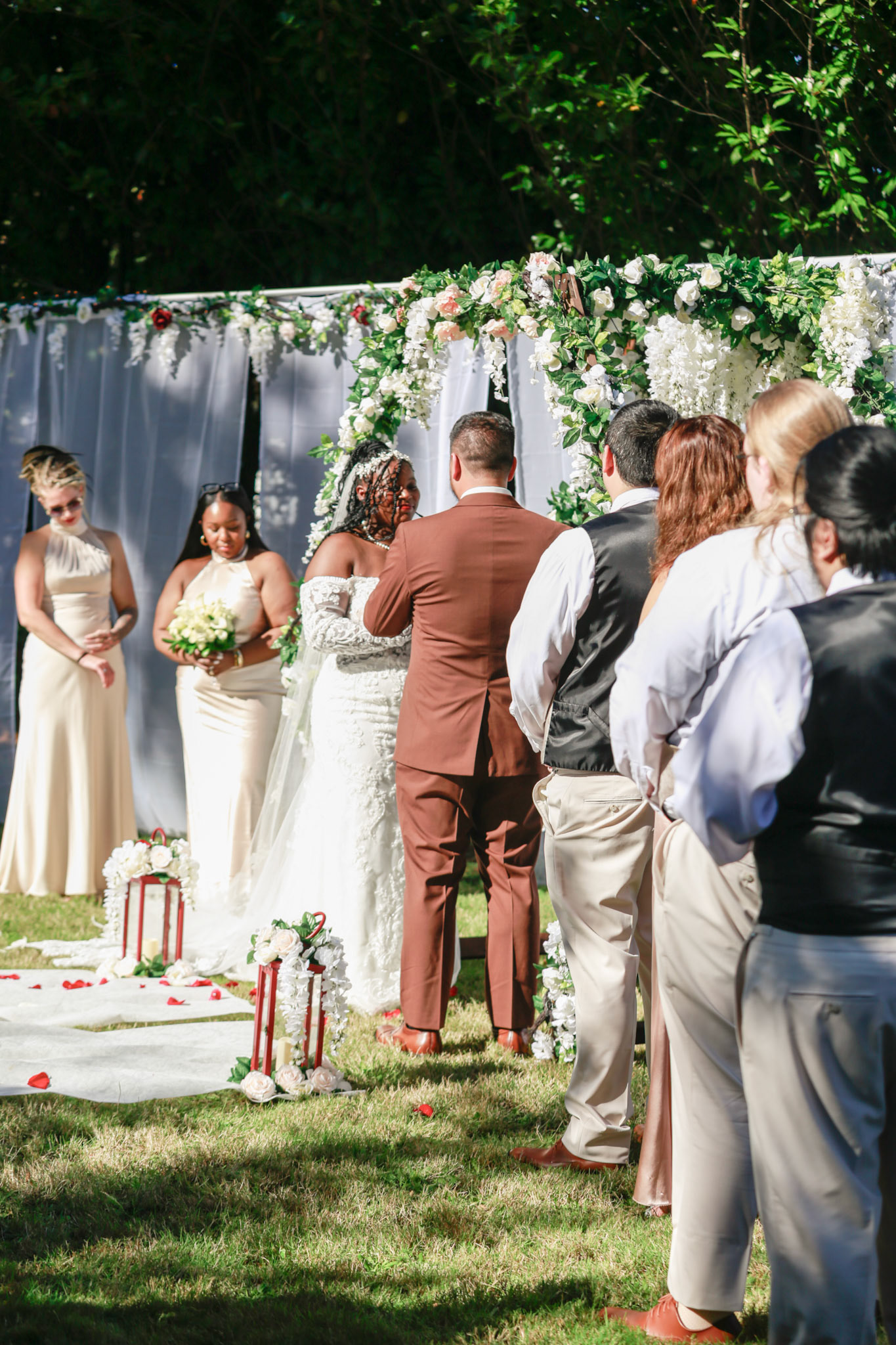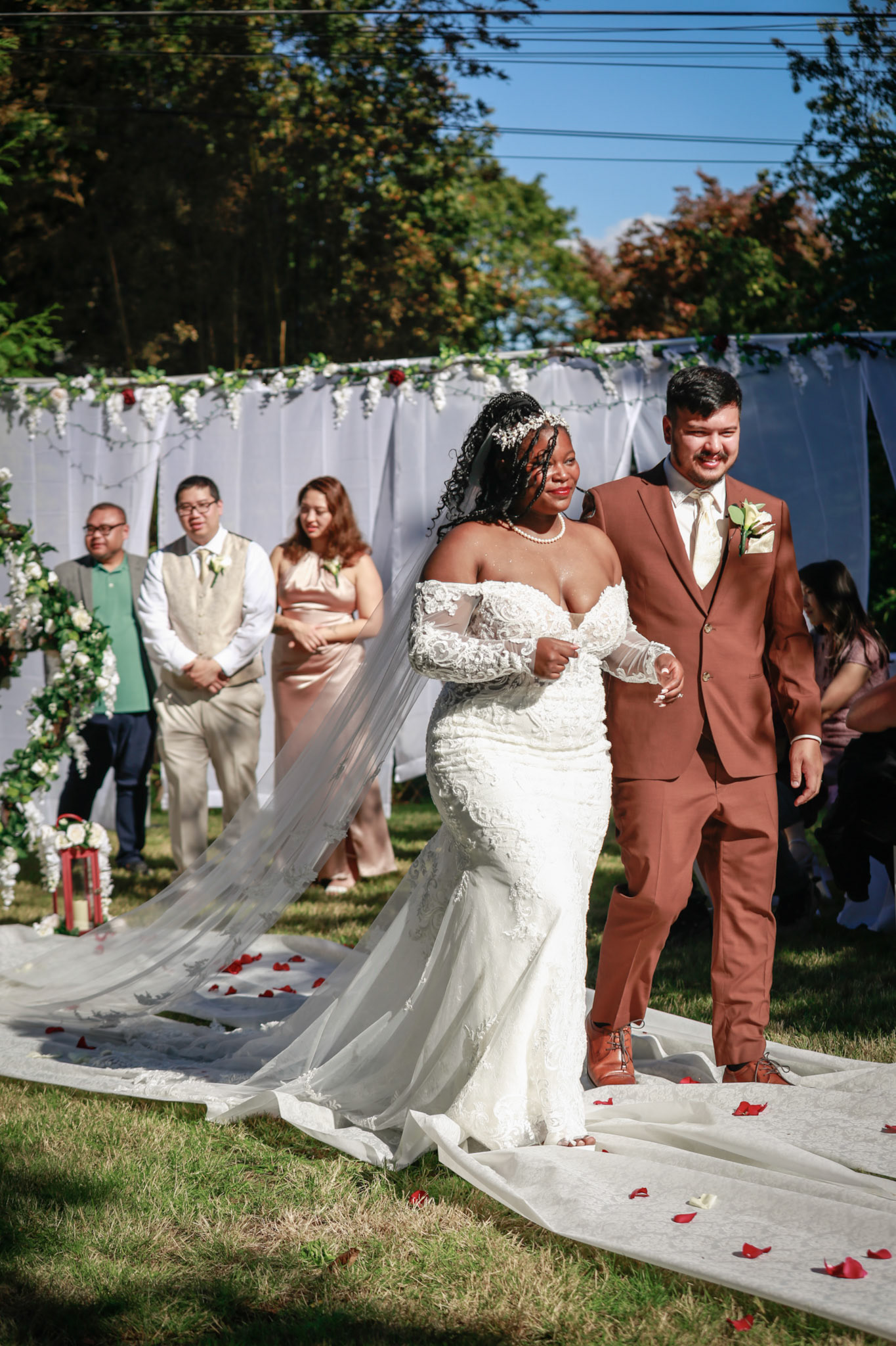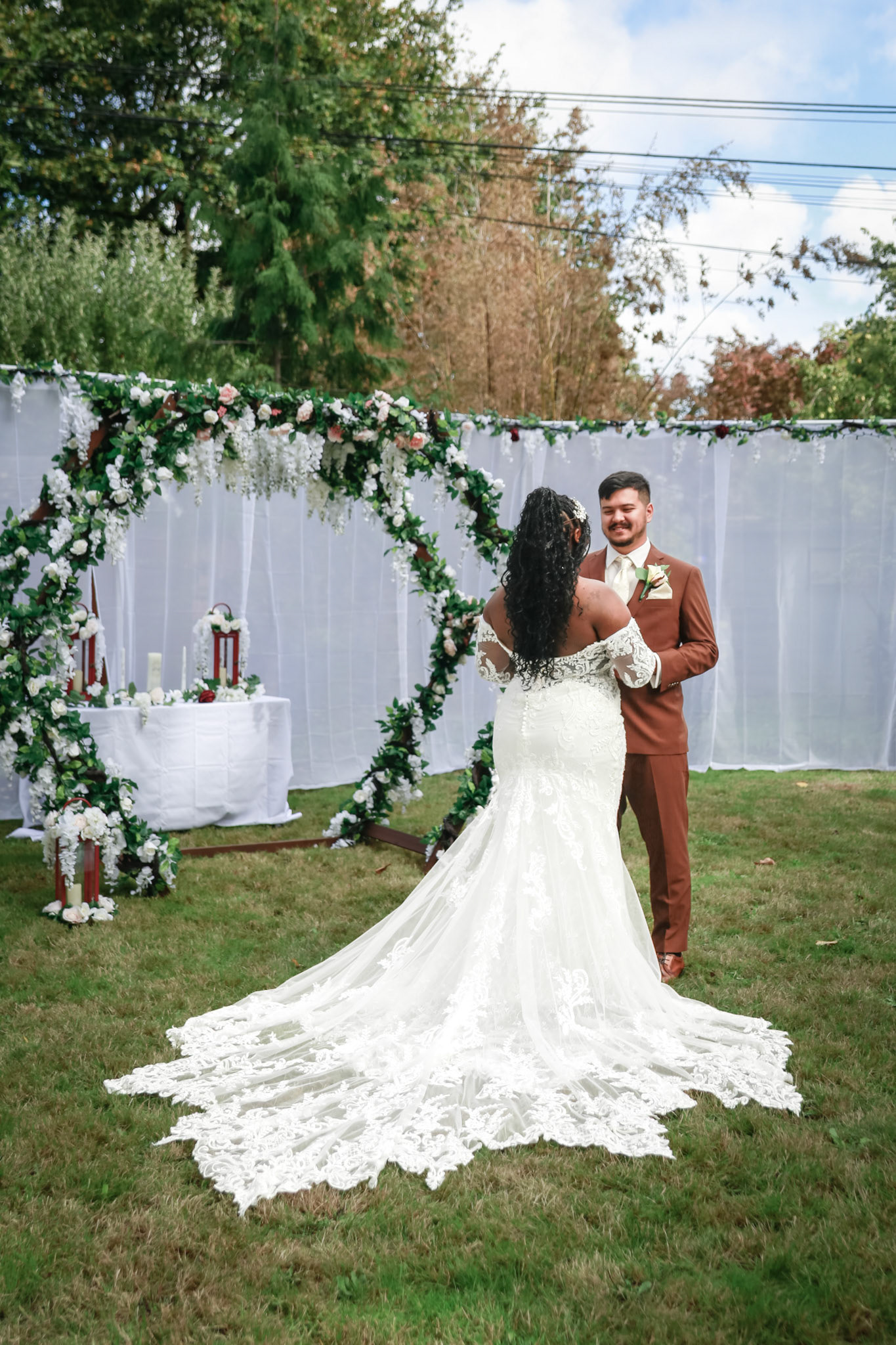 Devon and Laloni decided to last minute to have their autumn elopement at their family home's backyard in the lush green garden. Formal portraits were taken amongst the fall colors at the beautiful Tsuru Island, Japanese garden in downtown Gresham, Oregon.