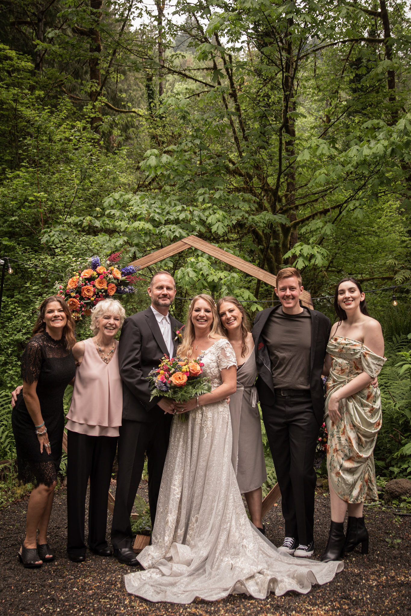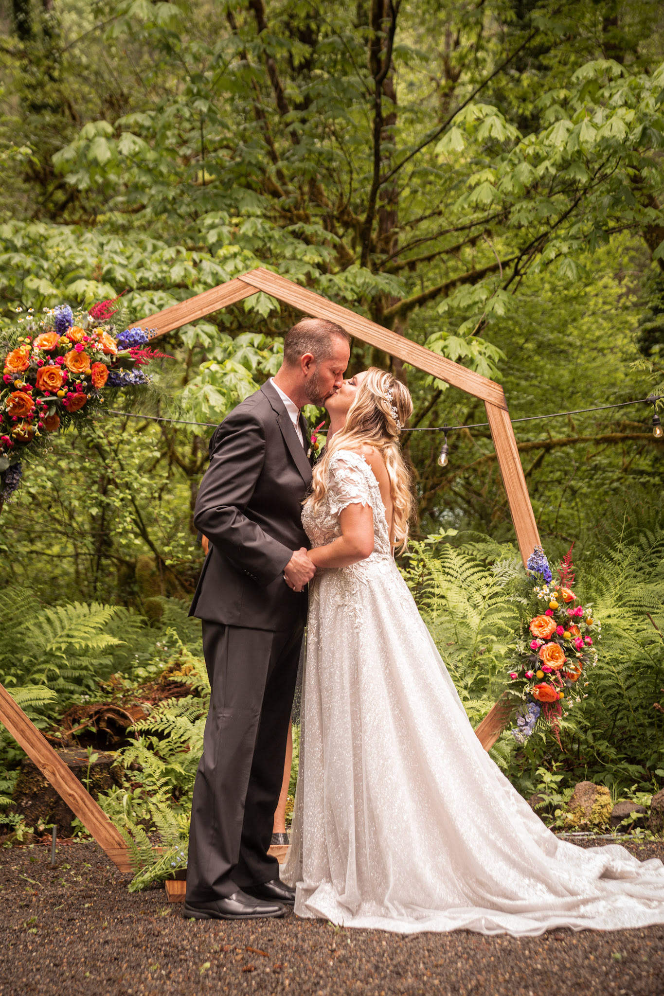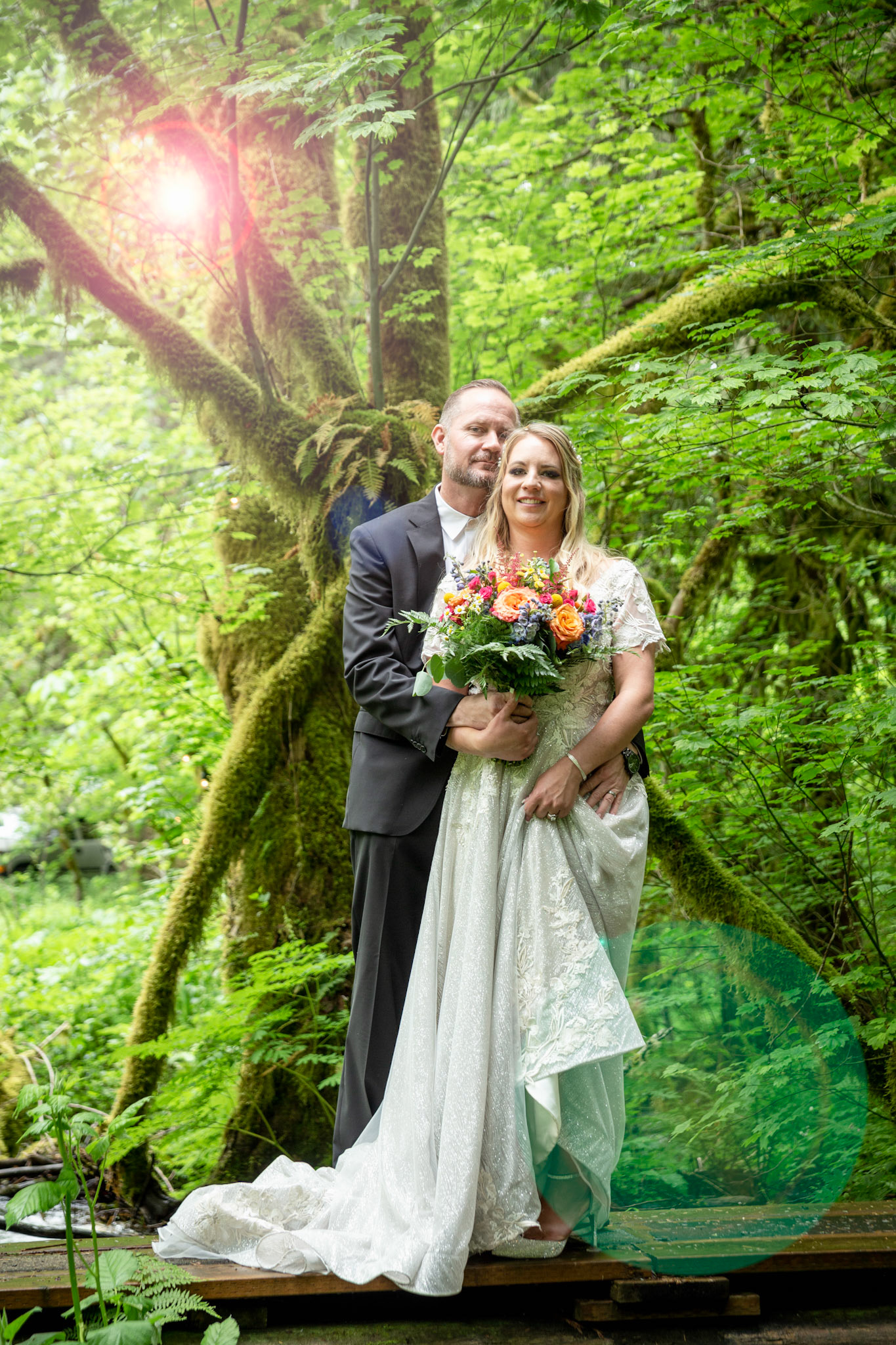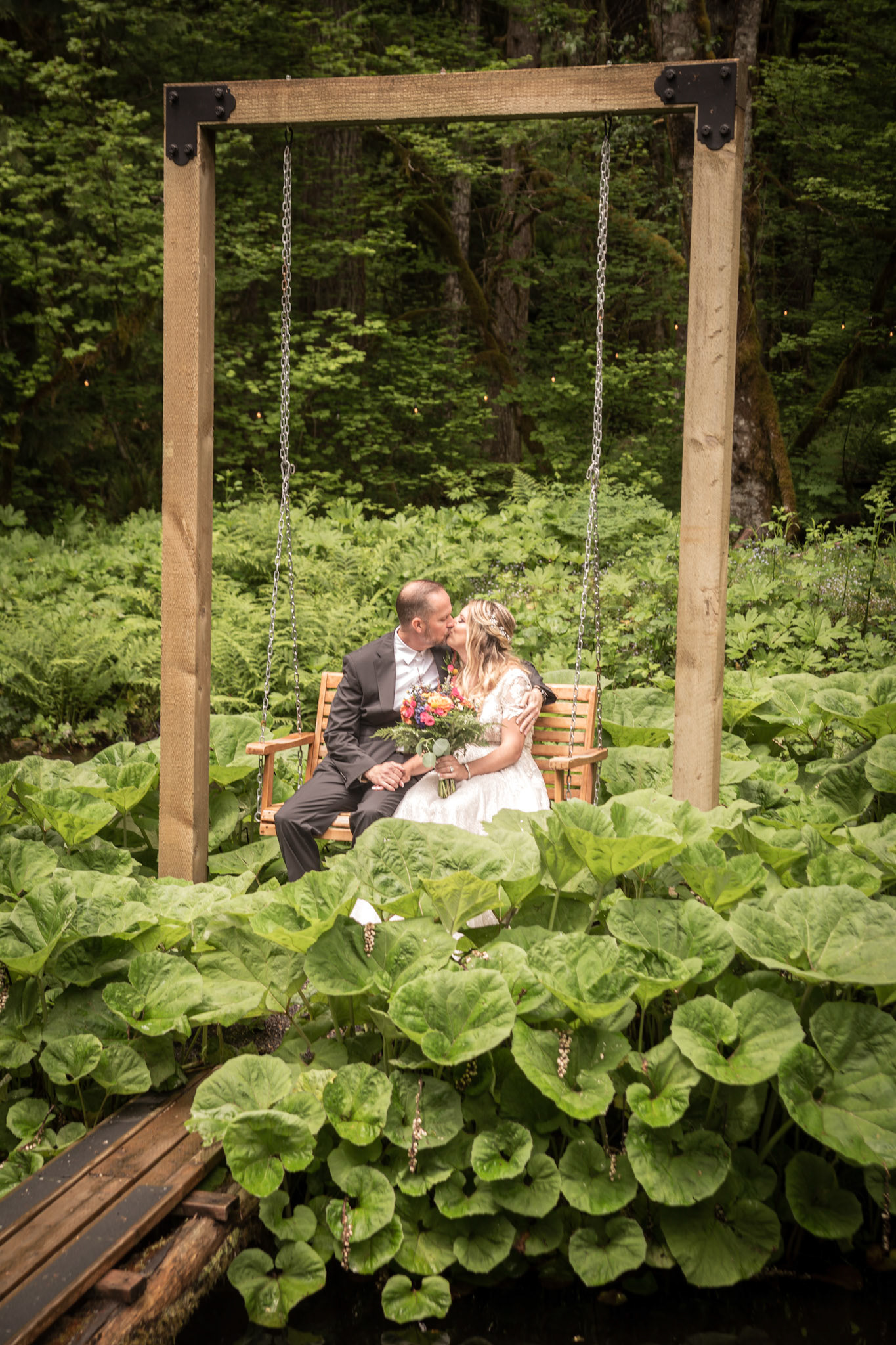 The Sherbucks celebrated in Brightwood Oregon at the Broken Bridge Pond surrounded by lush spring forest green gardens.