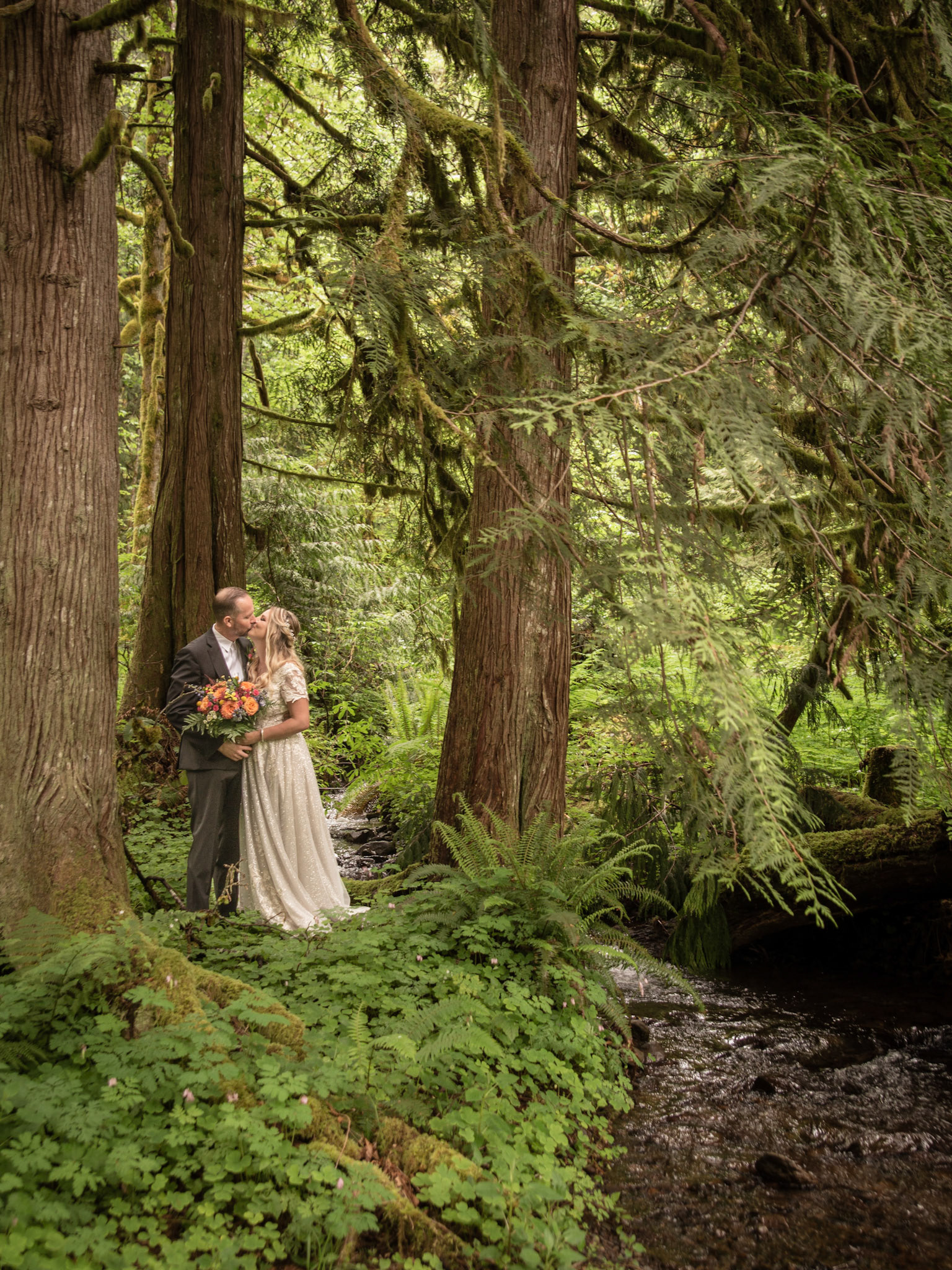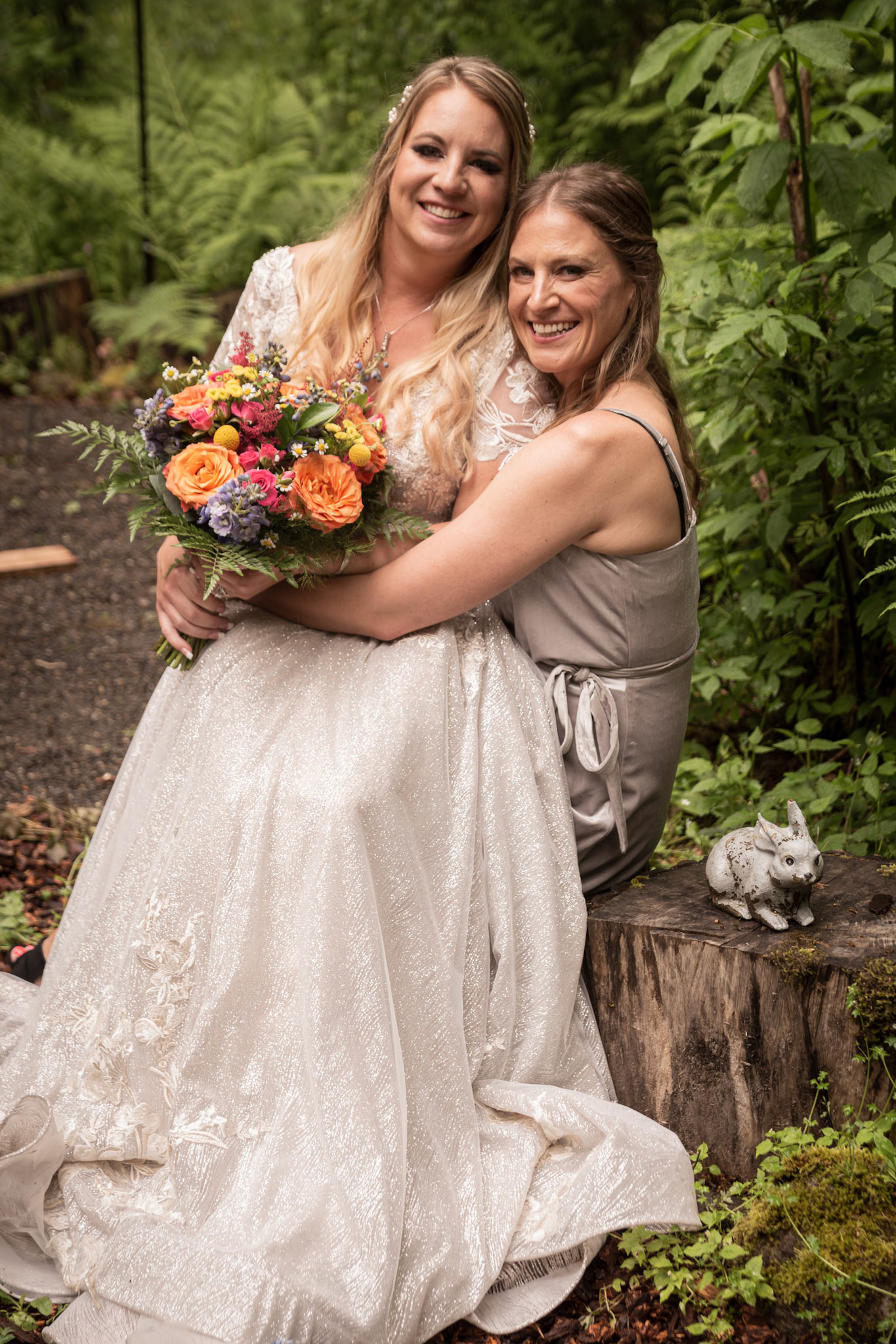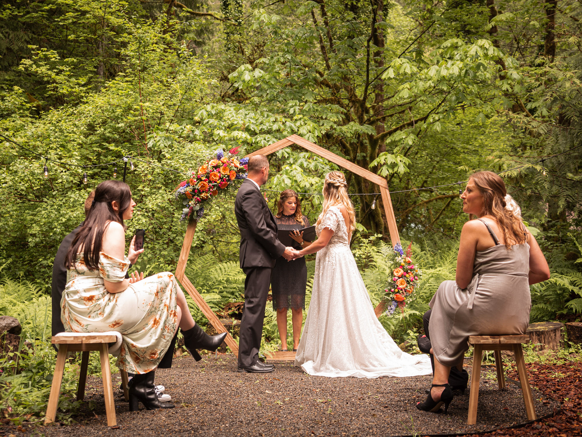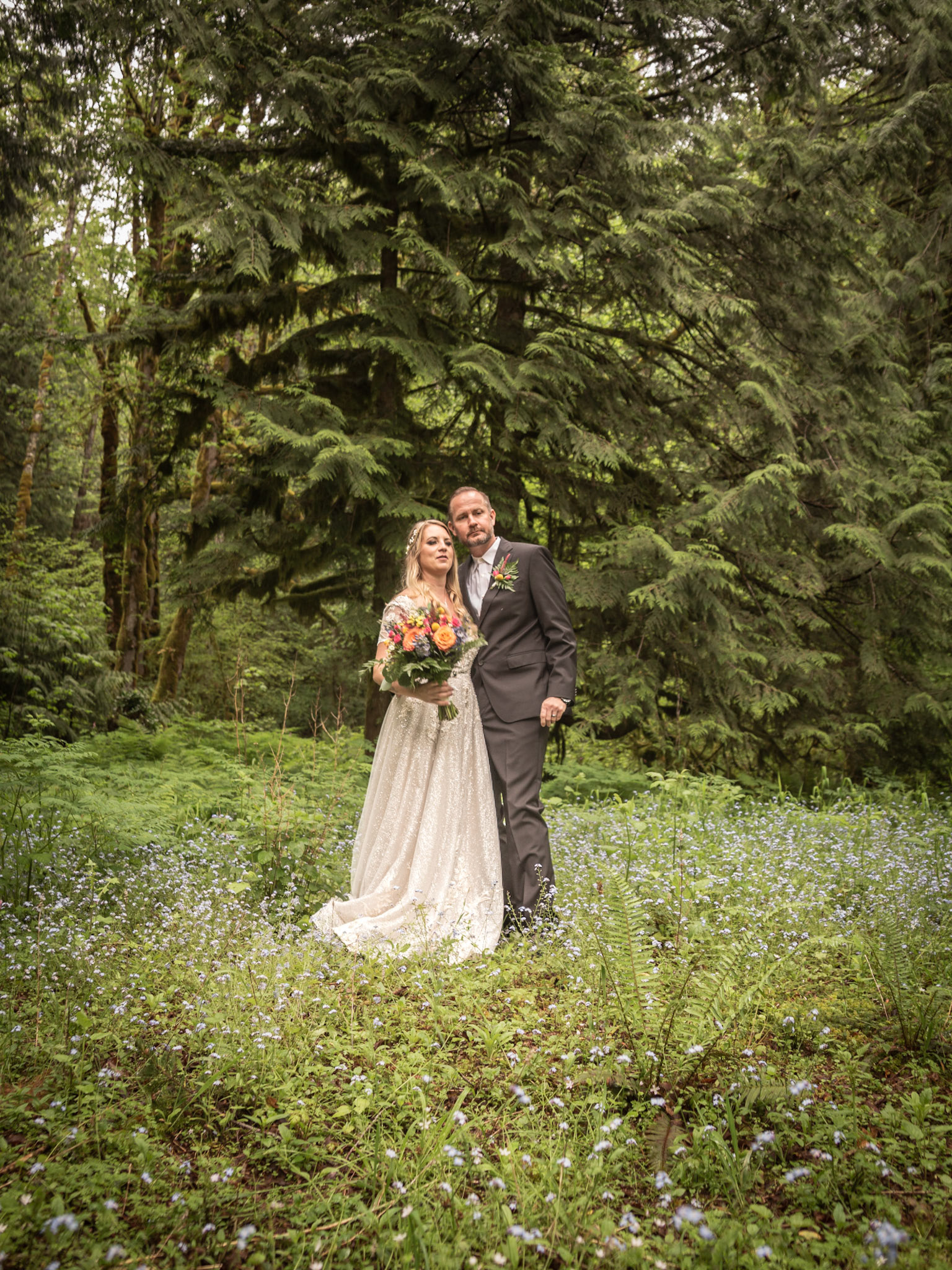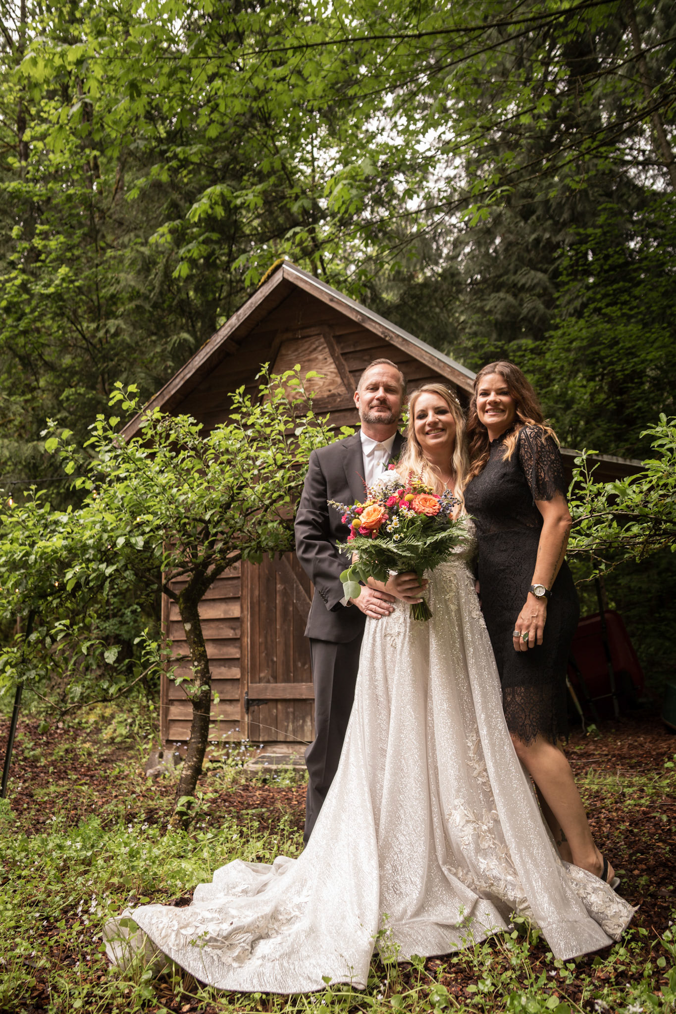The Sherbucks celebrated in Brightwood Oregon at the Broken Bridge Pond surrounded by lush spring forest green gardens.