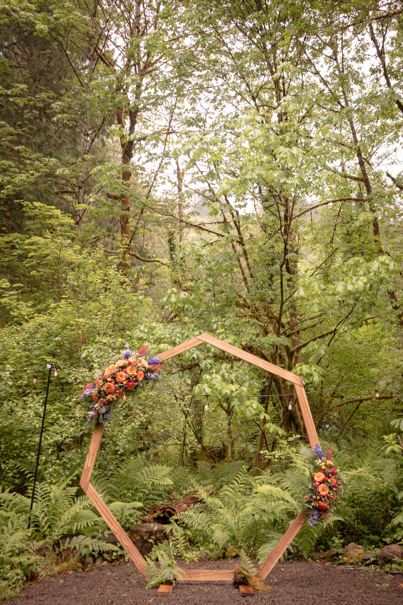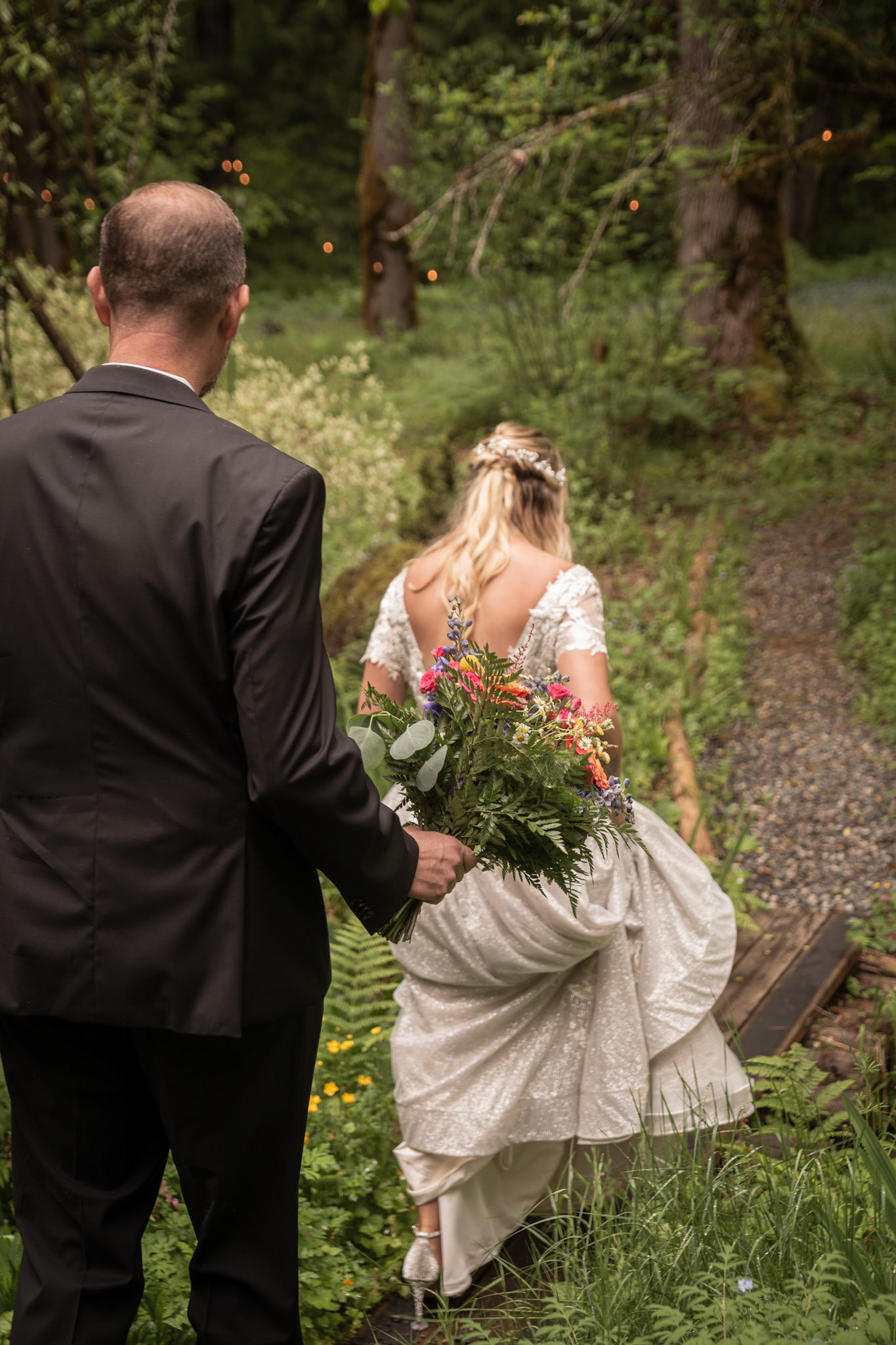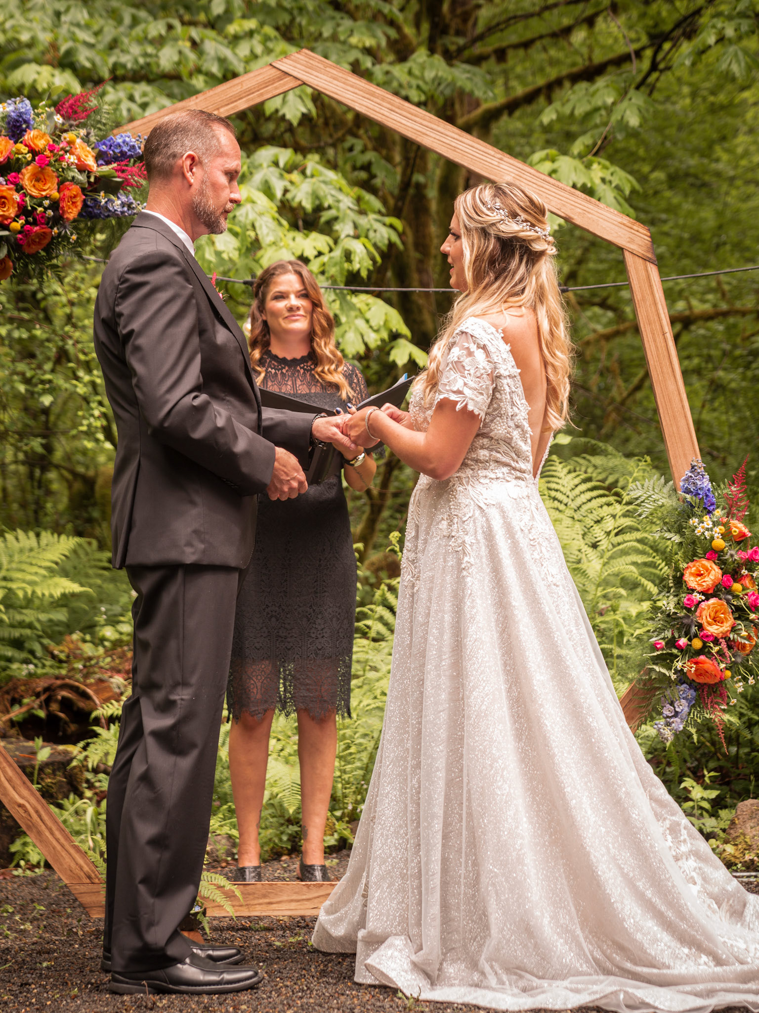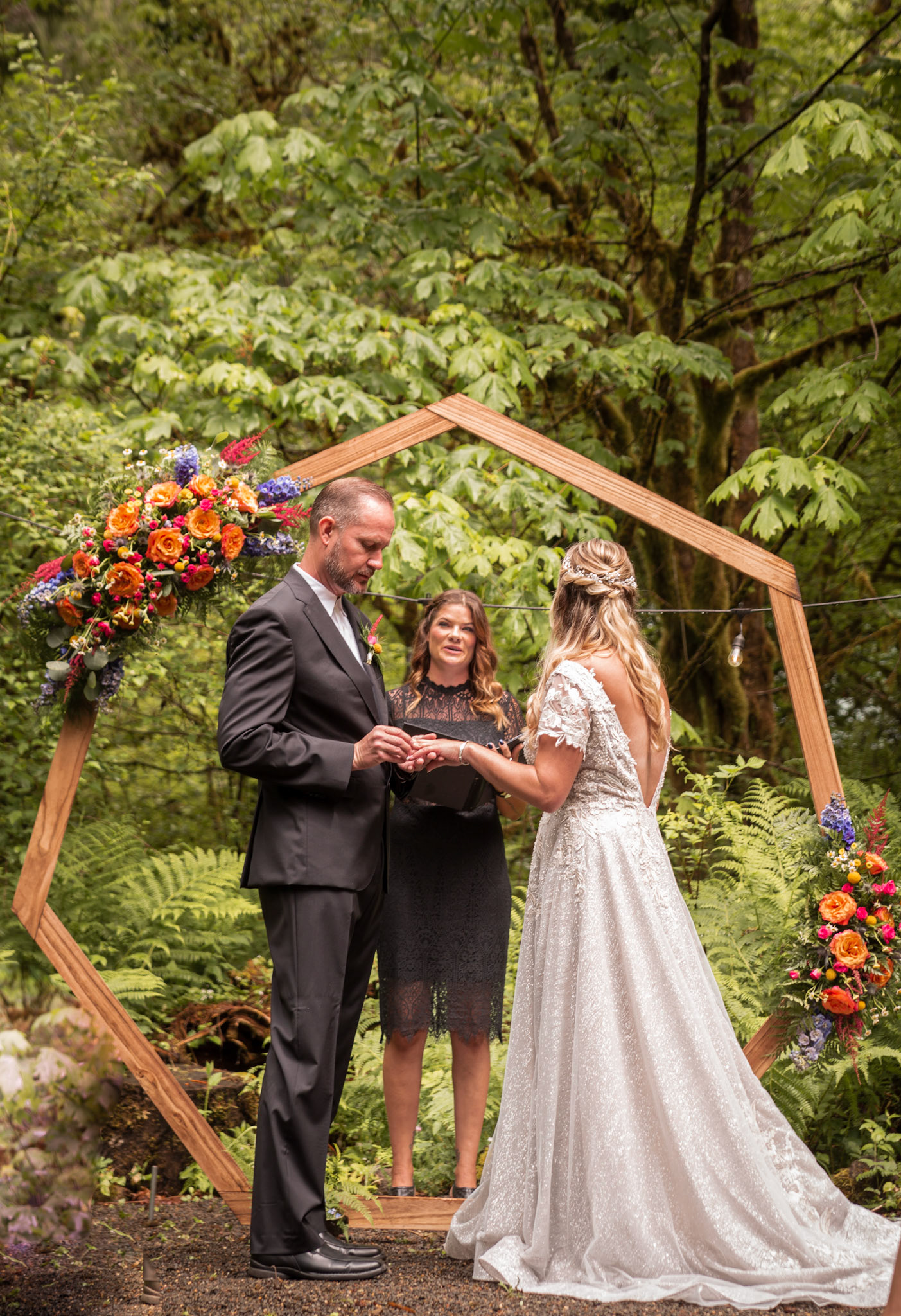 The Sherbucks celebrated in Brightwood Oregon at the Broken Bridge Pond surrounded by lush spring forest green gardens.
