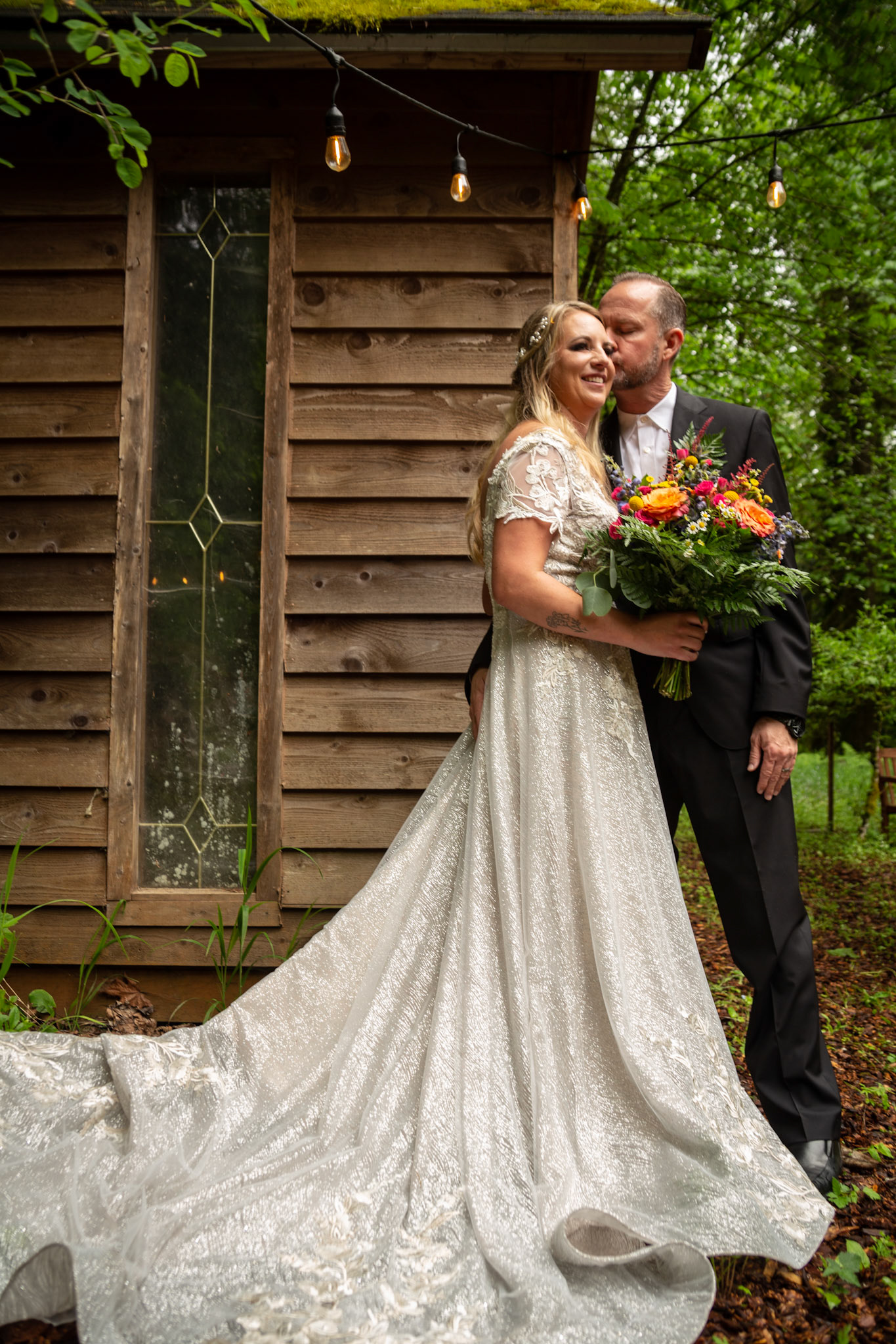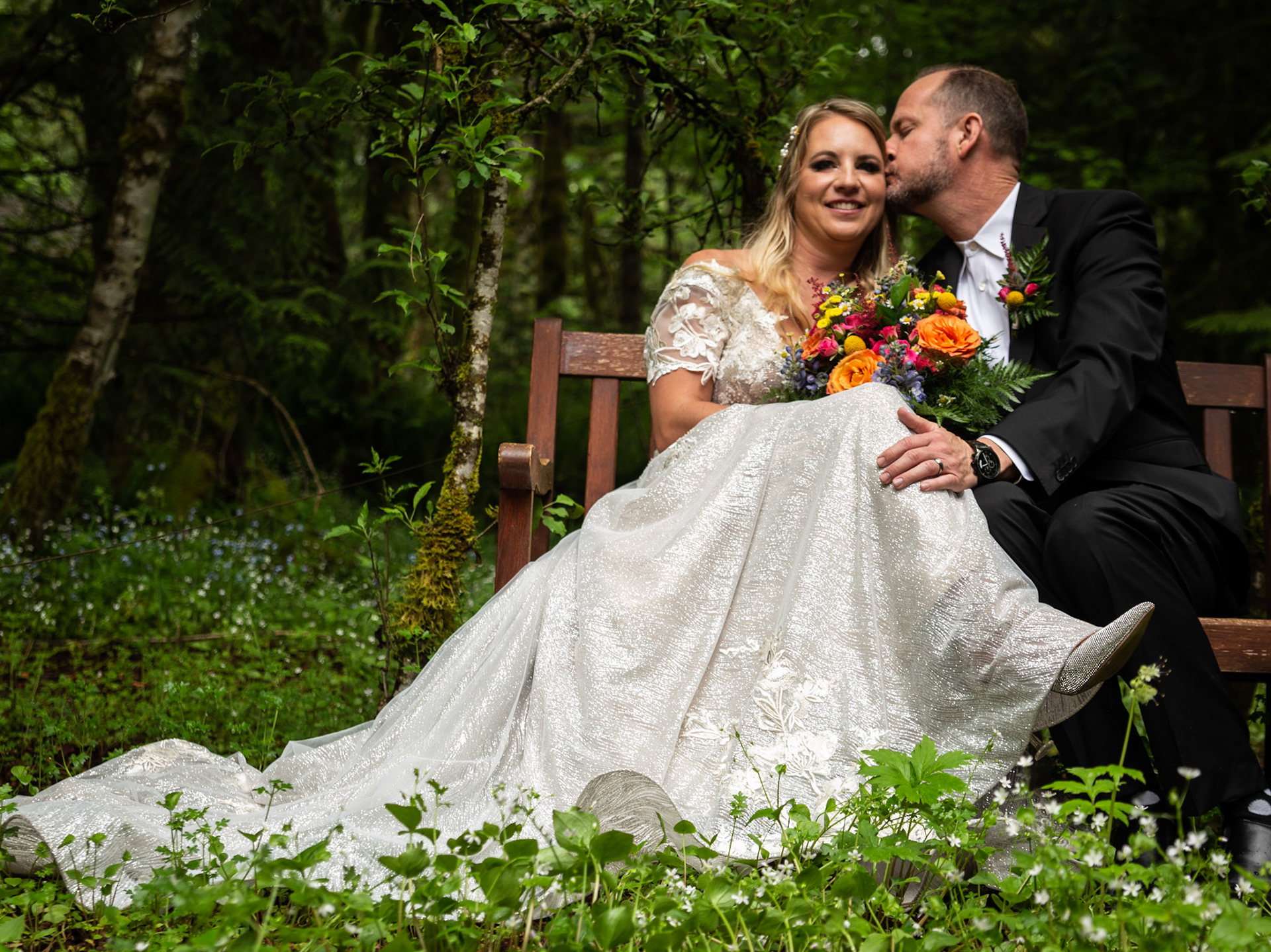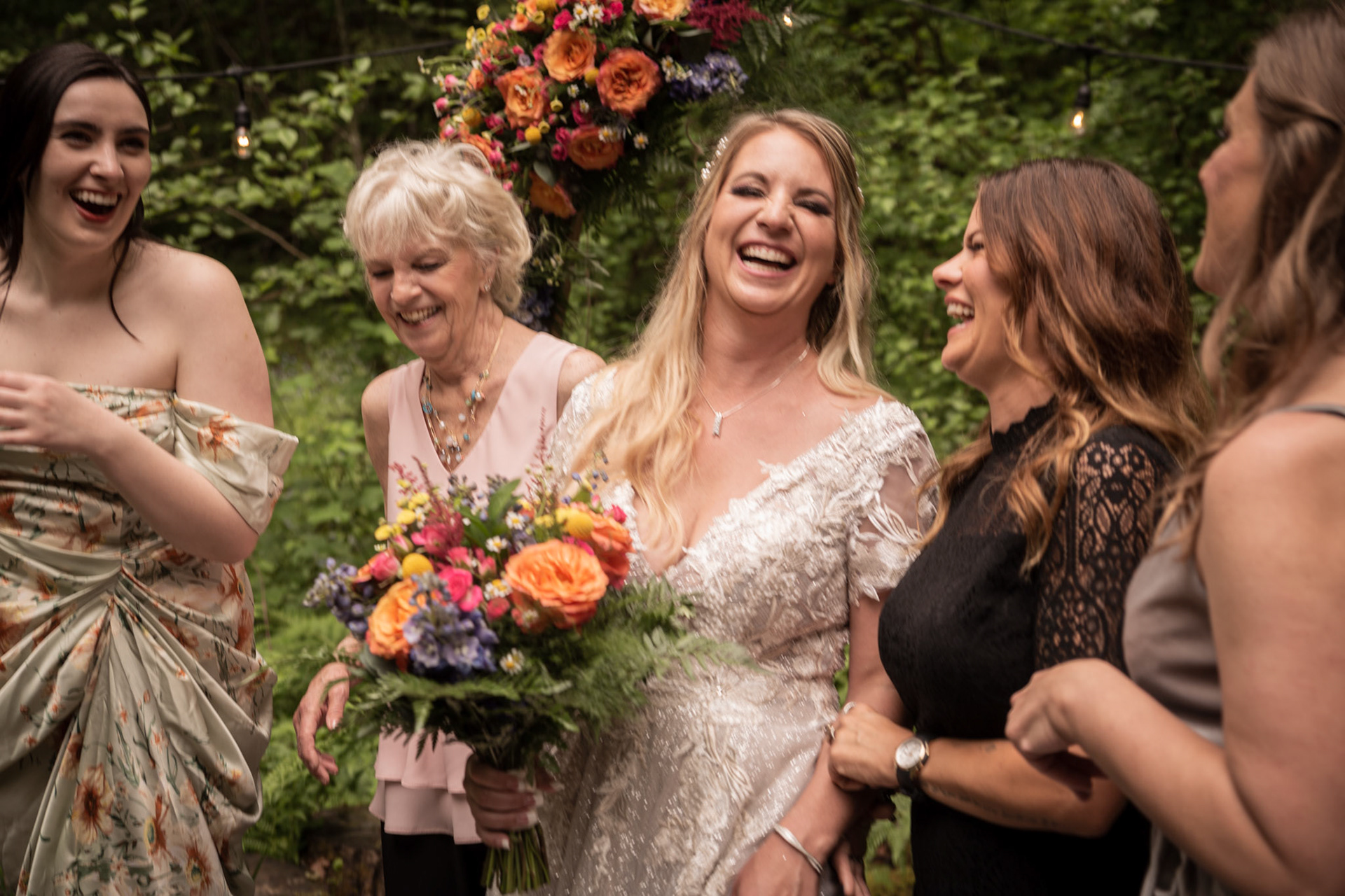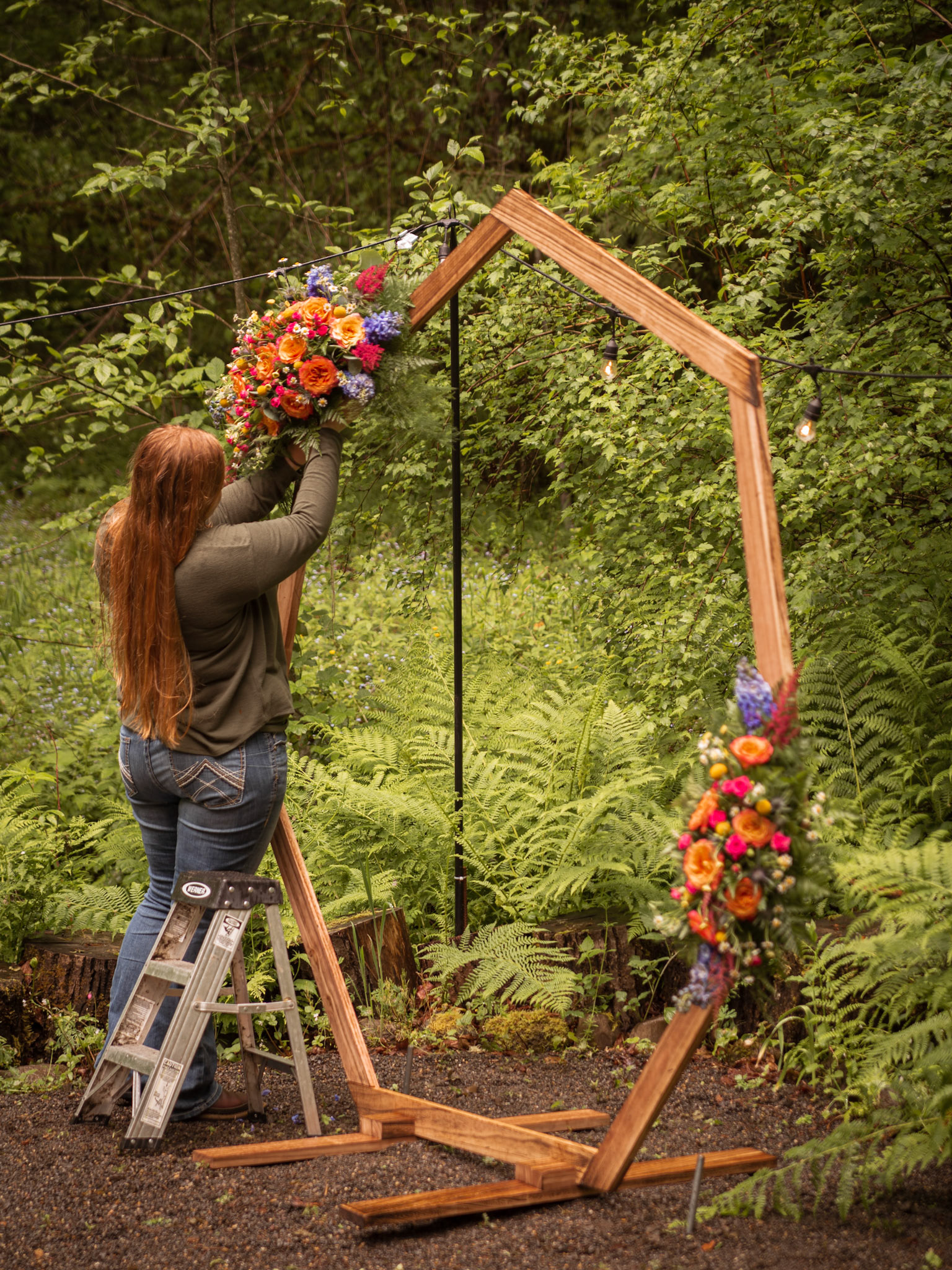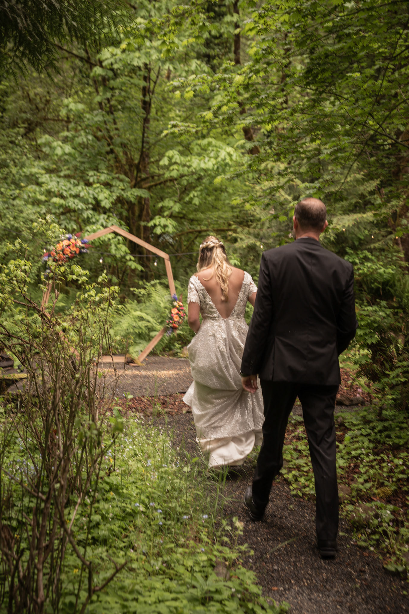 The Sherbucks celebrated in Brightwood Oregon at the Broken Bridge Pond surrounded by lush spring forest green gardens.